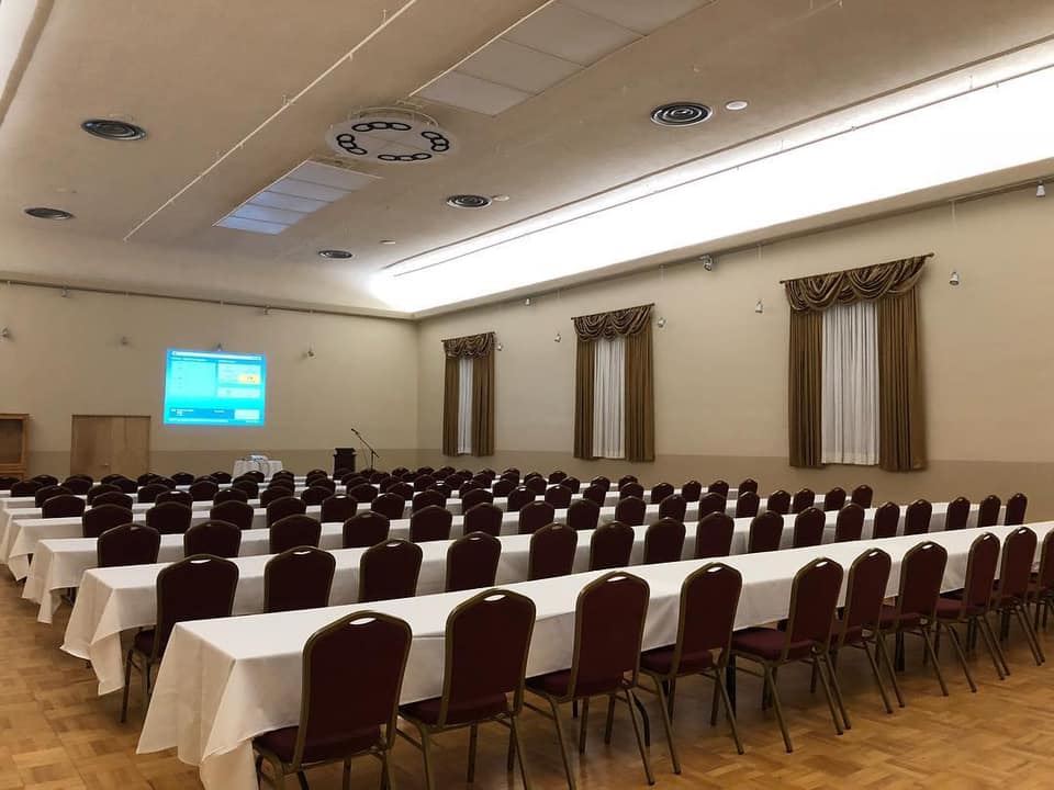 Our Ballroom is our most rented room due to it large, yet simple nature. Great spot for larger gatherings where you may want to have a dance floor area along with tables and chairs set up for dining. The Ballroom can be bundled with our Reception Room when more space is needed. The Reception Room makes a great spot for food tables that keep it out of the flow of the party.