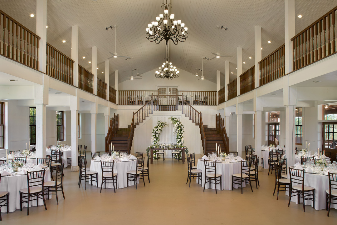 The sophisticated yet country ballroom is ideal for dinner, dancing, presentations, or workshops. With its vaulted ceilings, double-oak staircase, wrap-around balcony, and built-in dance floor, this versatile room can be easily adapted to suit the specific needs and themes of your event. Whether you're planning a wedding reception, a corporate gala, or a social celebration, the grand hall provides an elegant and comfortable setting for your guests.