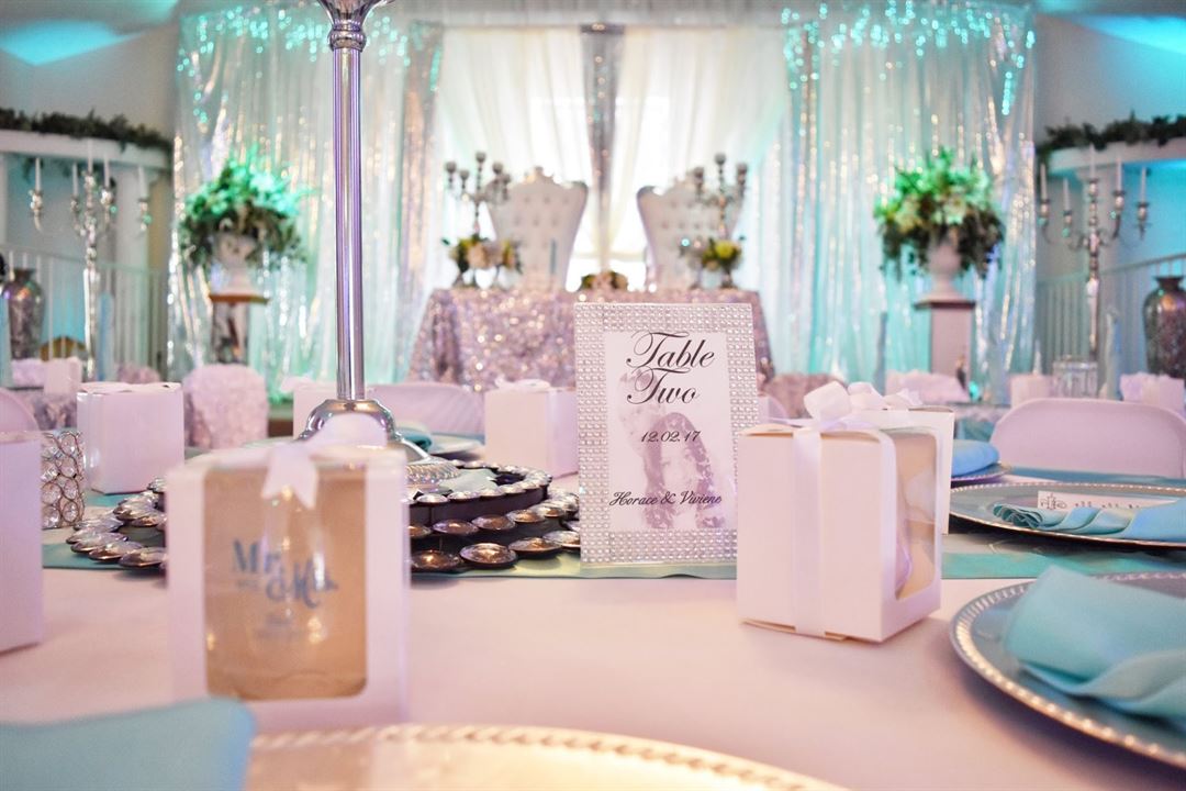 Na'Kayshions provides custom decorating services, wedding equipment, event staffing, indoor and outdoor accommodations. The venue is surrounded by thick trees, a tranquil lake which overlooks a lovely water fountain, and a beautifully garden. The remarkable indoor features includes; stain glass, premier lighting fixtures, elavated stage, bridal suite, a special effect disco ball dance floor and much more. A magical moment to last a life time.