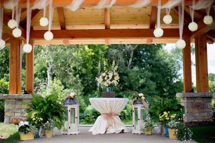 Our charming pavilion, which settles on a lush green lawn surrounded by beautiful mature trees and seasonal flowers, is a wonderful setting for your wedding ceremony or renewal of vows.