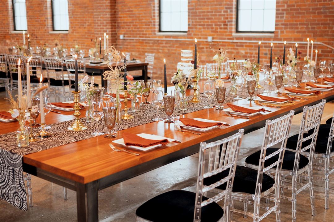 Have your wedding, your way! Imagine your wedding in 10,000 square feet of modern industrial elegance, located in a repurposed historic gem in downtown Champaign. Impeccably designed with exposed beams, polished concrete floors, and a stunning 25’ lofted sassafras ceiling, you’ll host up to 500 guests in style with plenty of room to meet, eat, and dance. Carmon’s will elevate your gathering with customized lighting, premium amenities, and available planning professionals to make every detail flawless.