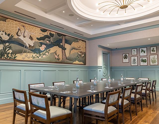 Rooted in Old World charm, 1670 Room is a transportive private venue designed for exclusive gatherings. Adjacent to Gingerline, its 1,105 square feet of handsomely appointed event space stand amid Historic Charleston City Market and feature palmetto-inspired art, French chandeliers, and a stately fireplace.