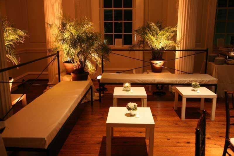 All evening rentals are from 5pm - 12am every night of the week. Rates are as follows: Sunday night - Friday night $1900 and Saturday night $2500. All rentals include a house manager, two security guards and the entire facility except the Dungeon (does not include tables/chairs). You may hire our colonial dressed docents to greet and administrate brief tours with your guests during the cocktail hour at the start of the event. They are $80 each per hour. (Typically our client's hire one or two for the first hour of the event). You may use any event services for your reception however they must be approved by Old Exchange management. Our facility can accommodate up to 200 people.