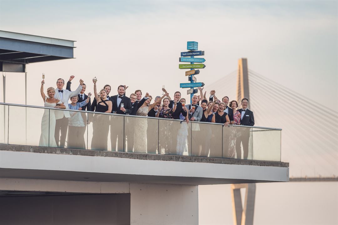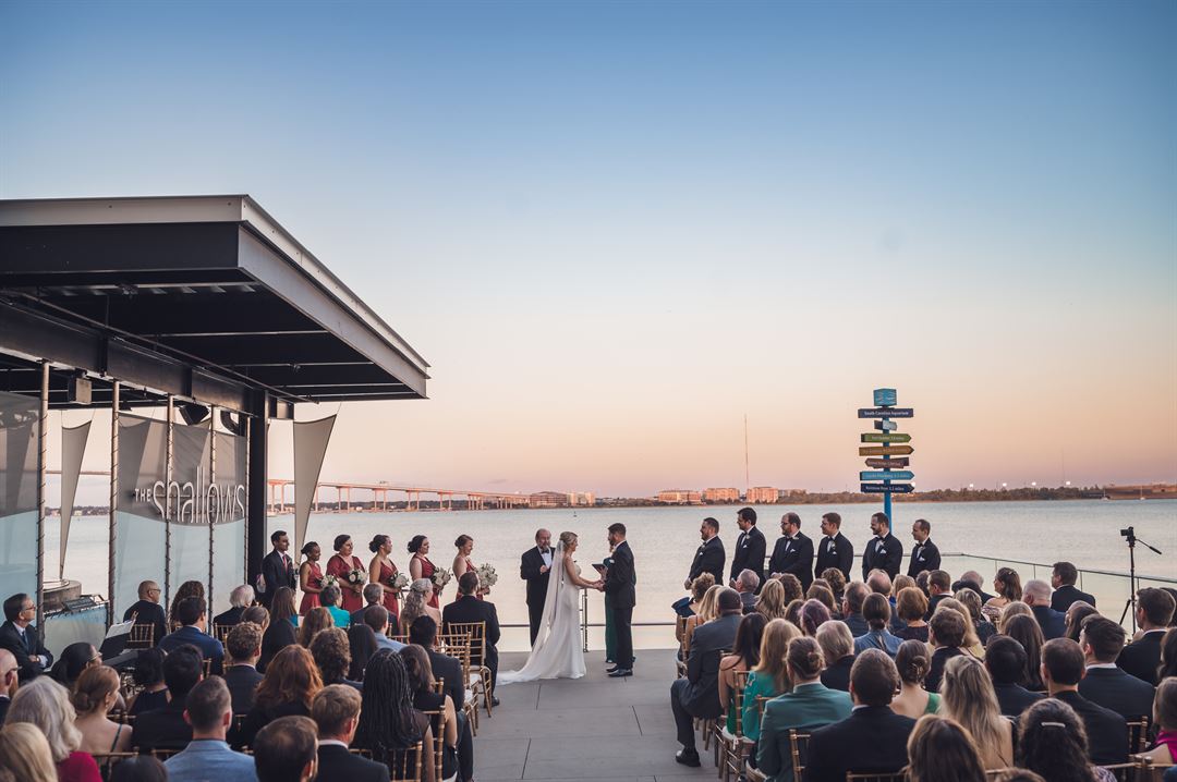 The South Carolina Aquarium offers expansive event space with options suited for every wedding, from a small intimate ceremony to a grand reception! Your outdoor ceremony on the Harbor Overlook showcases vast views of the water, Ravenel Bridge and USS Yorktown as a stunning backdrop. The Great Ocean Tank, North America’s deepest tank, provides a dramatic living setting for your indoor ceremony or reception. Events may have up to 500 guests, or up to 200 guests if a seated meal is planned.