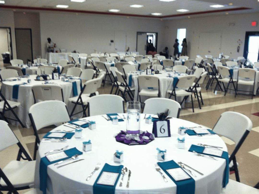 The multipurpose room is 3,257 square feet and comfortably seats up to 350 auditorium style and approximately 180 banquet style. Rental of the Center includes: 300 chairs, 12 round banquet tables, 10 rectangular banquet tables, 5 folding rectangular tables, and 4 cocktail tables.
