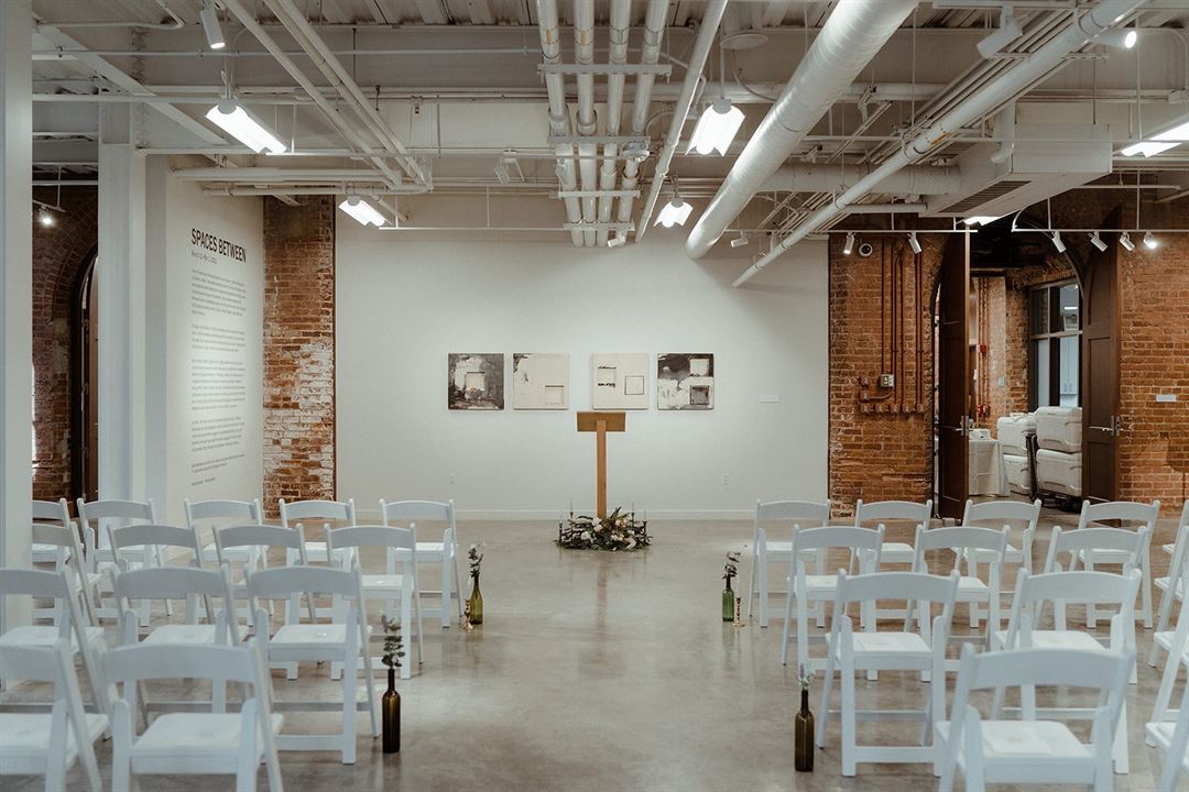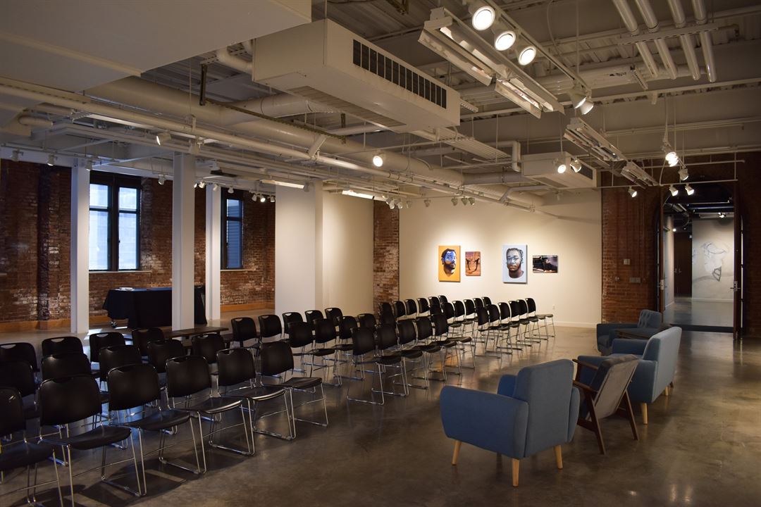 McColl Center's Dickson Gallery can accommodate approximately 175 people standing, 150 seated auditorium style, 125 seated for dinner/reception. (*all numbers are estimates and some flexibility does exist)