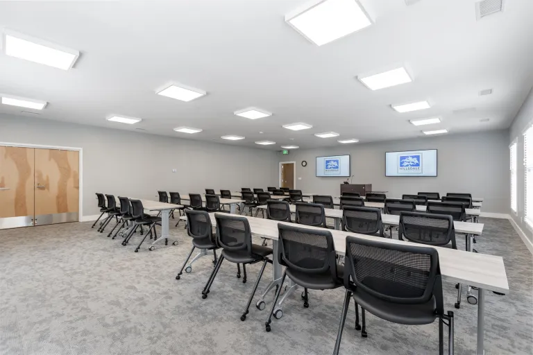 The Hillsdale Conference Center is a special event rental facility offering a modern, professional environment ideal for hosting a wide range of gatherings. With 3,500 square feet of column-free space, the Center is designed to accommodate everything from small business seminars and group meetings to large conferences, luncheons, dinners, receptions, and more.