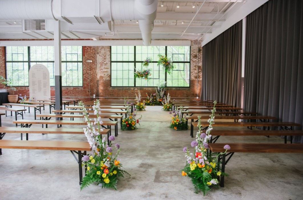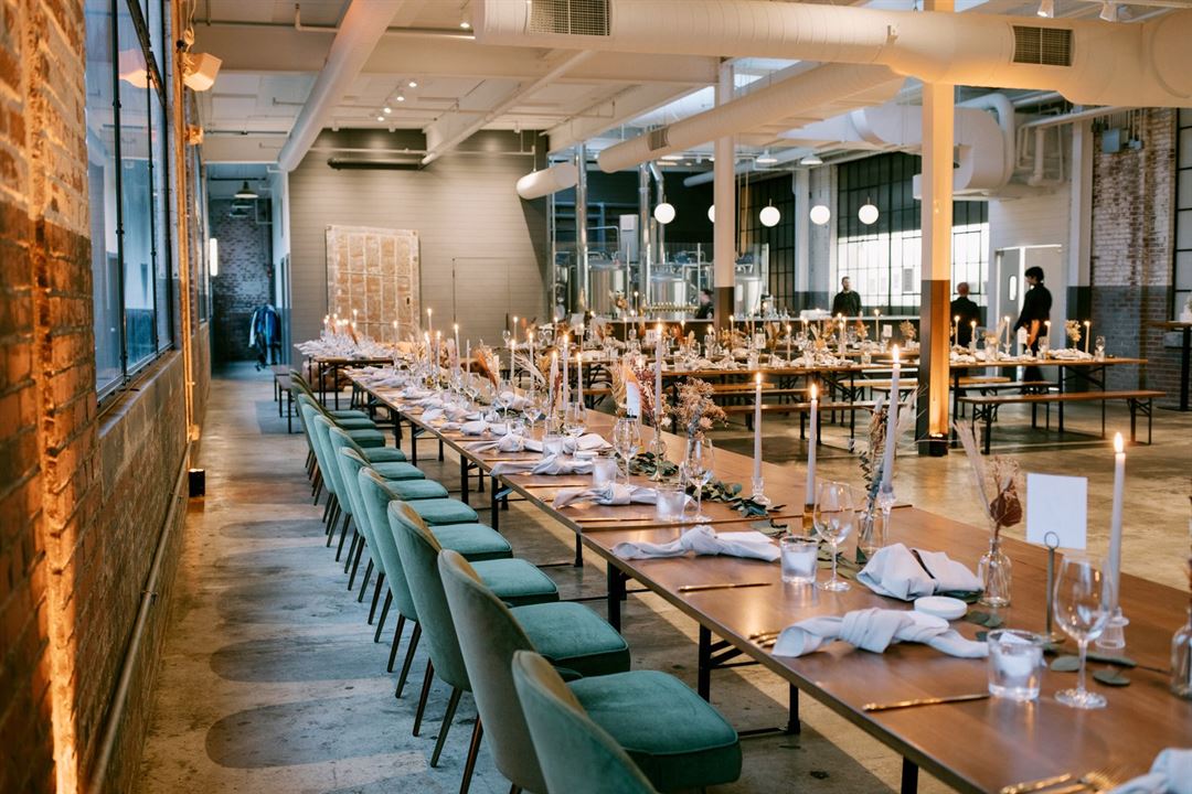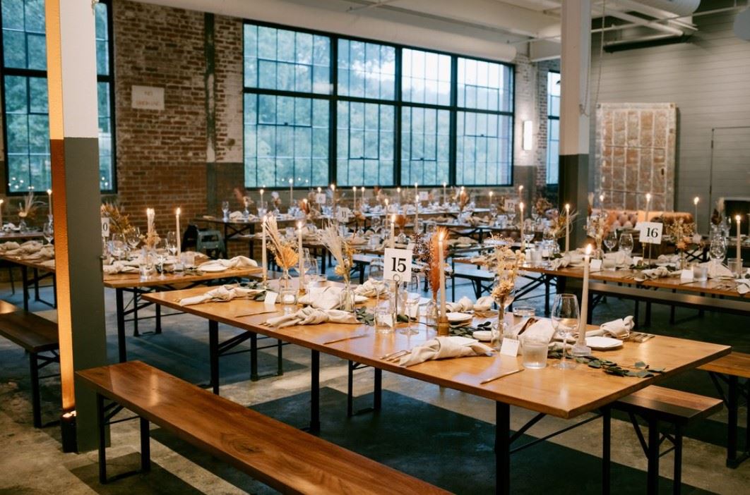 The Wool Factory is a wedding and event venue located at The Historic Woolen Mills, a restoration of the 19th century textile mill in Charlottesville, Virginia. The original industrial aesthetic has been preserved to form the breathtaking backdrop for its showpiece event hall. A premier event destination featuring in-house event catering by celebrated Executive Chef Tucker Yoder, The Wool Factory is capable of hosting 10–570 guests for everything from intimate corporate dinners to rehearsal dinners to grandiose weddings & celebrations.