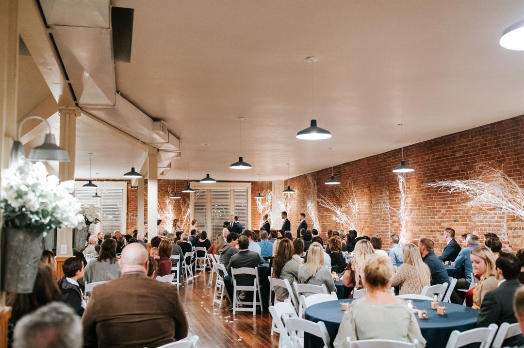 The Vintage Grand Room, Clubhouse and Rooftop Patio are available for banquets, weddings, receptions, meetings and any other special event. The grand room is approximately 6000 sq ft of 1889 charm and can accommodate up to 250 guests. Original hardwood floors and beautiful brick give it a true vintage feel. The room is surrounded with white tree lighting, which provides a great ambiance. A bride room is located on the first floor of the Hotel Washington building, and can be added to any rental. The building also features an elevator which provides access to all three levels of the building.