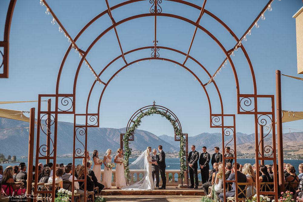 The Siren Song Vineyard Estate sits above Lakeshore Drive on the south shore of Lake Chelan. We offer private event and wedding options for up to 200 guests. You’ll find the perfect package to fit your individual or group’s needs. Siren Song offers a majestic atmosphere with old world sensibility, and rustic comfort. Enjoy sweeping views of Lake Chelan as well as intimate proximity to our vineyard. Explore the property inside and out and you’ll discover charming gathering spaces, picture perfect photo opportunities, water features, luxurious gardens, and a variety of eye-popping art.