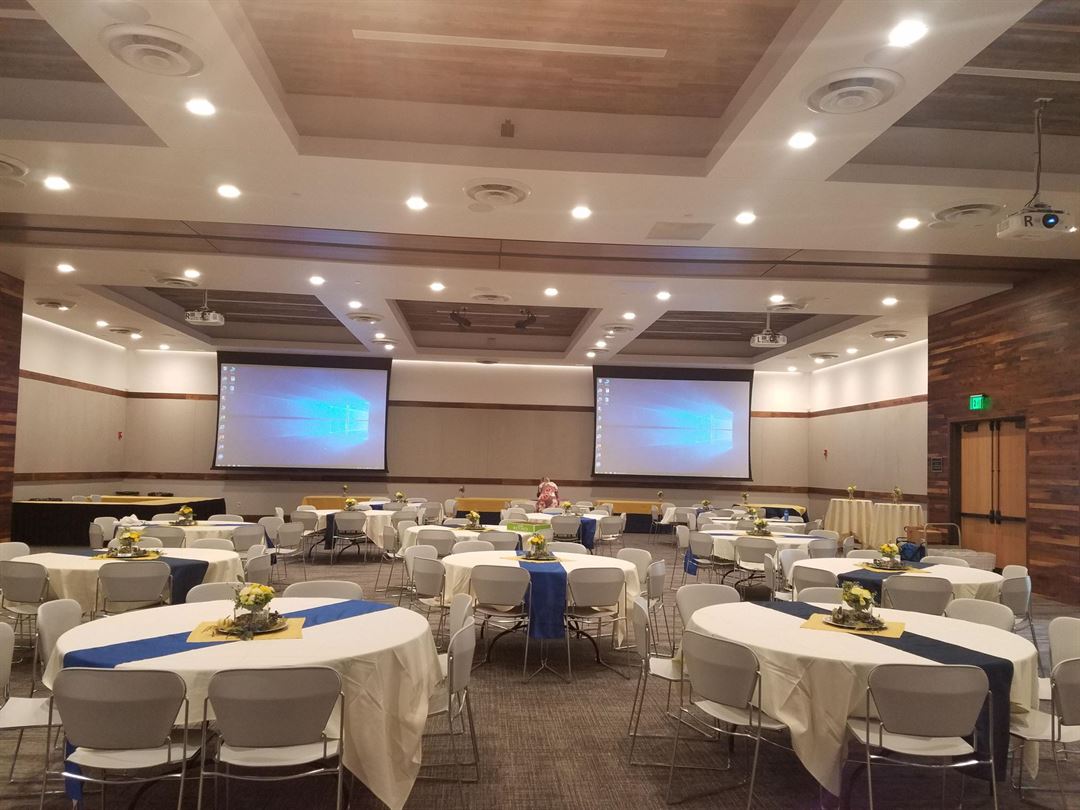 The room was perfectly set up up with the tables and chairs and additional display tables we needed for our event. The whole set up was perfect! It’s private and it’s great to have access to the kitchen and the ice machine. It was quiet. I would highly recommend!