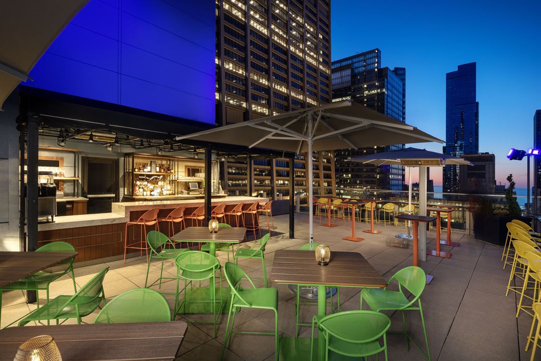 Chicago’s skyline has a tendency to sparkle at night and you can see it all from AIRE, our rooftop bar in Chicago. A chic ambiance and fun décor are staples here, with small plates made for sharing.