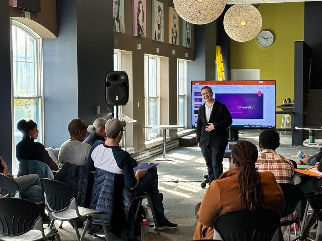 If you're looking for something on a larger scale, for more of a presentation with audience input, they do have a theater that can be rented out for a very reasonable price. Be careful though and do request the space in advance, it can be in high demand depending on what projects are floating around at the time. The theater room holds around 80 people and is also up to date on technology so any sort of presentation can be given. If tables need to be set up, there is the space to do so.