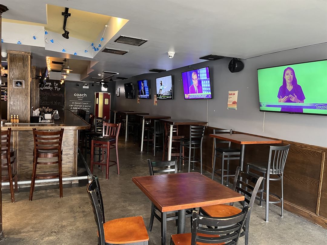 Coach's Bar & Grill is a neighborhood bar that caters to customers by providing a great atmosphere through drinks, food, and music.
