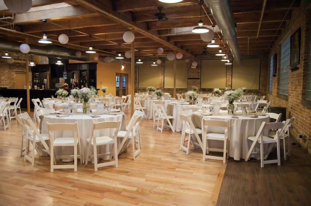 The Annex is a new, modern addition to the Copernicus Center, boasting a loft look with hardwood floors, exposed brick walls and a natural wood beam ceiling spotted with skylights. The space is equipped with a bar, restrooms, coat check, sound system, internet/wifi and catering kitchen. This space can be configured in a number of ways – providing a cocktail area, dining area, and various seating arraignments which can include a dance floor. The Annex is accessible via a separate entrance off Lawrence Avenue (handicap accessible). Contact us for your next banquet, wedding reception, meeting, seminar, small concert, party, and other events.