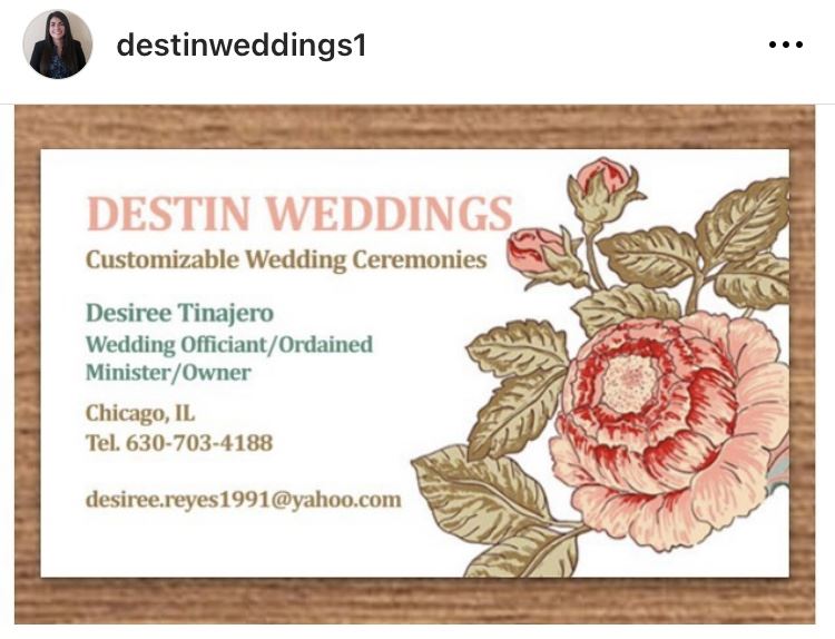 Are you looking for a Wedding Officiant? You can trust me to take care of all your ceremony details/wants/needs. My services are customized to fit your budget and specific needs, so you don't have to worry about a thing. I do elopements-large weddings. I can help you create your fairytale ceremony in order to guarantee your guests will be raving about the event afterwards and to make it the most memorable day. Whatever the circumstances, I am here to make your event extra special. I can also assist with wedding planning, decorating, floral arrangements, and photography. My services will create a wonderful and unique experience. Let me help you say “I do!” Bilingual services available, se habla español. Bodas y bendiciones para quinceañeras.