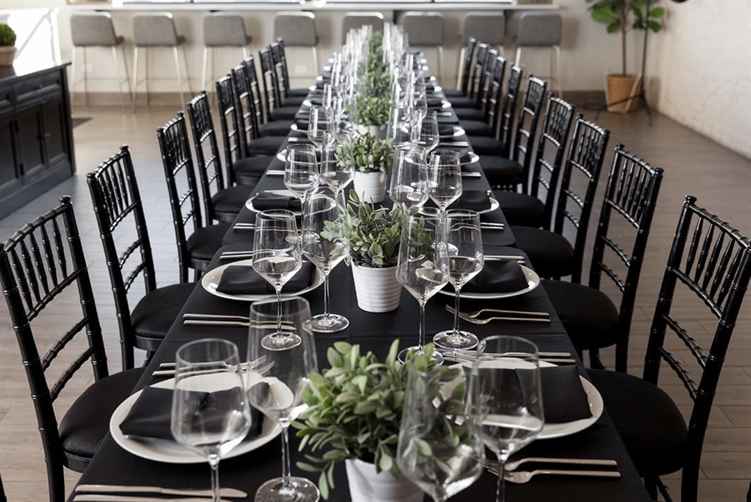 Celadon is stately and modern room with a rustic woodgrain table at the helm and touches of greenery and modern accents throughout. For larger gatherings such as business meals, birthday parties, or baby showers, Celadon is able to accommodate up to 30 guests.