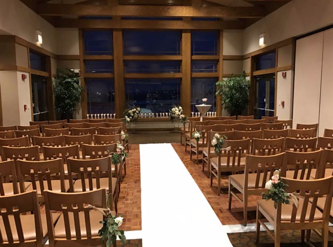 The clubhouse can seat up to 250 people or accommodate around 300 people for a walk around reception. We offer everything from plated dinners to elegant buffets to hors d'oeuvres cocktail receptions. We can customize the food and beverage menus to fit your taste and budget.