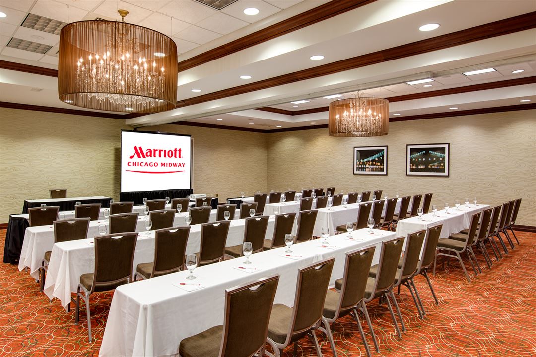 Elevate your travel experience at Chicago Marriott Midway. Named a 2020 AAA Inspector’s Best of Housekeeping hotel, our innovative hotel near Chicago Midway Airport offers sophisticated comforts and social opportunities. Recharge in our stylish guest rooms featuring pillow top mattresses and spacious workstations with ergonomic seating. Enjoy concierge lounge access in select rooms and suites. Start your day at our onsite Starbucks® and enjoy satisfying meals at Copper Fox. Maintain your active lifestyle at our indoor pool and 24/7 fitness center. During your stay, enjoy easy access to attractions like Downtown Chicago, SeatGeek Stadium, and Brookfield Zoo. Our hotel also offers dynamic, stylish event spaces for your next business meeting or wedding. Simplify group travel with our free airport shuttle. Whether you're in town for business or pleasure, travel brilliantly at Chicago Marriott Midway.
