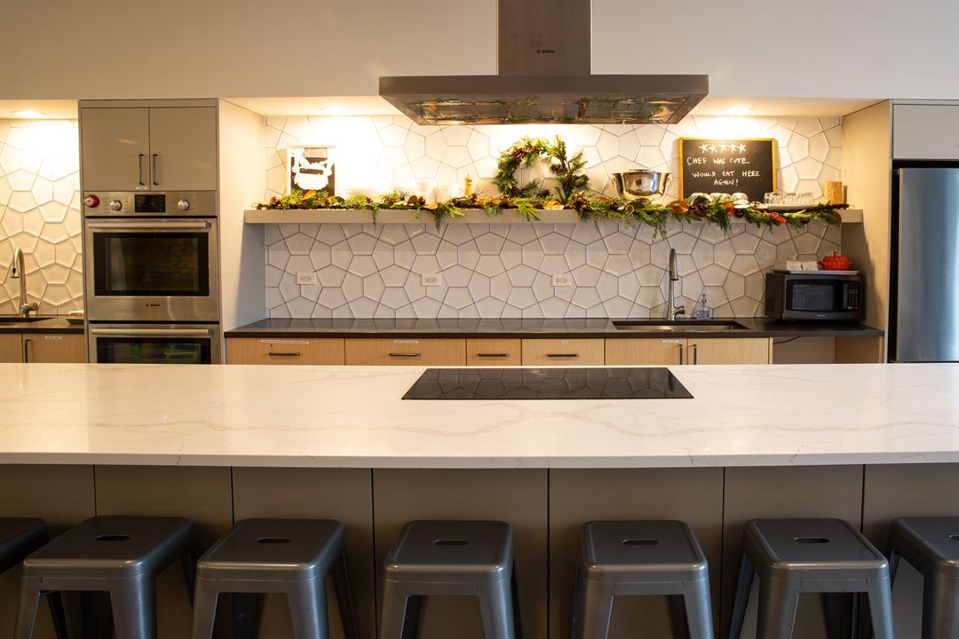 -Island accommodating 12 guests at countertop and for events where you mix and mingle, we can seat up to 30 people, max capacity 40 guests