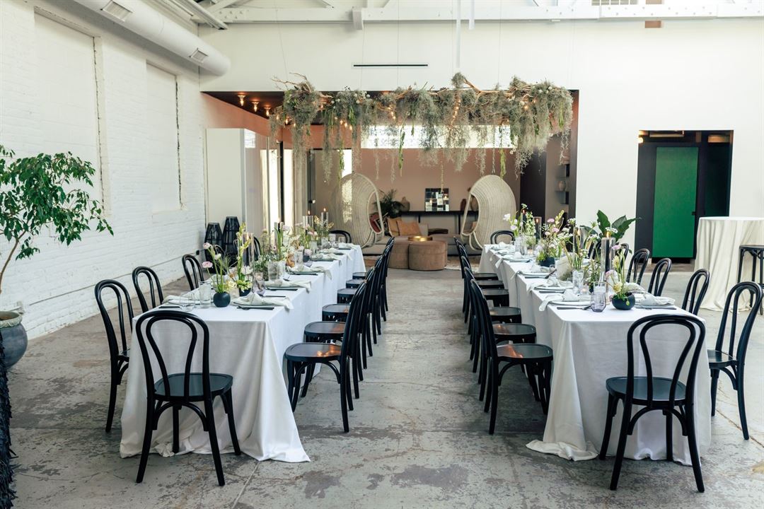In the beating heart of Humboldt Park, The Atria is an intimate bow truss loft that has been renewed into a naturally artistic meeting and event space with magazine-worthy design. With one step through our doors your guests will be in awe of the 20-foot ceilings, stunning 75-foot motorized skylight, and eclectic textures. Our 6,000 sqft space boasts white brick walls, marbled concrete floors, luxurious Saint Henry granite bar, inviting custom wood furnishings, and a creatively woven backdrop of reclaimed textiles. Our historical building combines an organically modern and industrial aesthetic, fostering an authentically timeless atmosphere perfect for gatherings of all kinds.