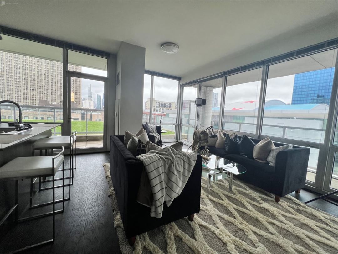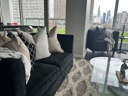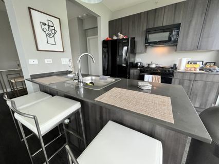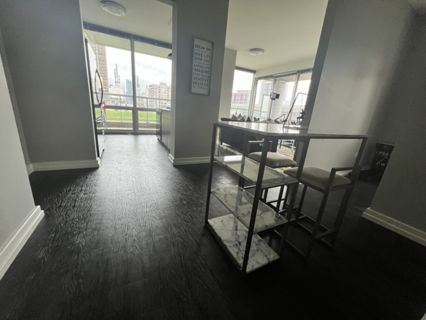 This gorgeous downtown apartment features all floor to ceiling windows! There are literally views from every angle 2 balconies and a back yard!!! Modern new finishes and 12’ ceilings. You won’t find this Gem anywhere else. Unit is a 1/1 in the property. The usable space is roughly 800 sq ft including a 1/2 bathroom. Can be configured for mature gathering or meeting. I can provide chairs for seating up to 20. There is standing room for a total gathering of 36 people. There is also an 8' x 10' space available in front of the North facing window that can be used for live music or service displays. Dark Hard wood floors and staged 6 star furnishings. Perfect for a film, meeting, wine tasting, baby shower, video shoot etc. Furniture is optional.