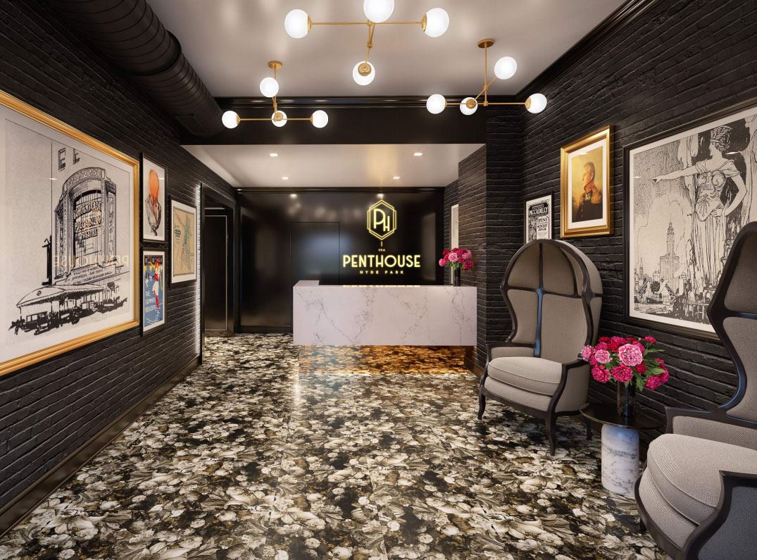 The Penthouse Hyde Park, located atop the former Piccadilly Hotel & Theater, offers an air of refined elegance that nods to its 1920’s roots. Our north and east walls feature 20’ arched windows that showcase skyline and lakefront views, unlike anything you’ve ever seen. Intricate crown molding has been restored to its original glory to provide just a touch of character. The space has been outfitted with modern lighting and a sound system to provide guests with a high-end experience they’ll remember for years to come.