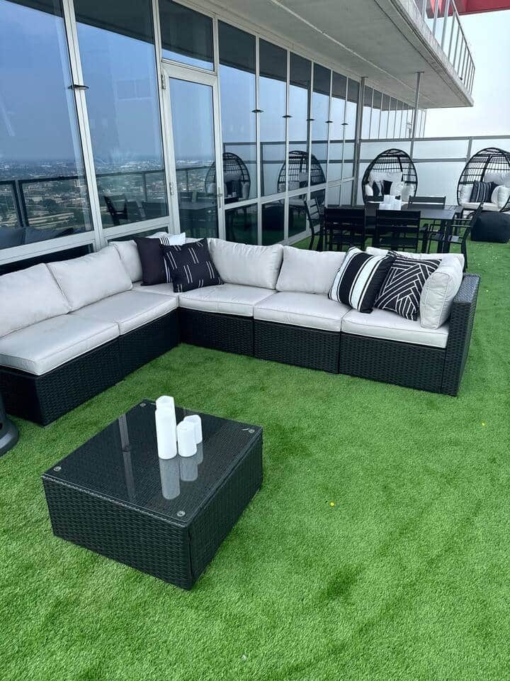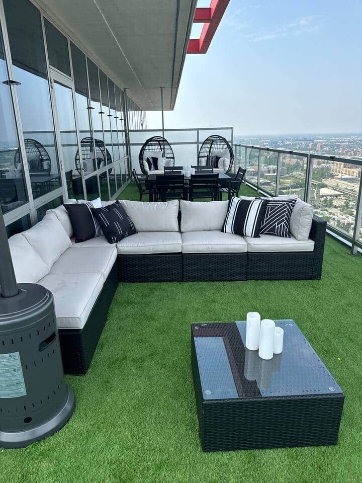 Experience luxury on the 32nd floor in this modern 2BR/2BA penthouse with a wrap-around balcony and panoramic city views. Ideal for photo/video shoots, content creation, events, and corporate gatherings. Host showers, dinners, retreats, or creative sessions with skyline backdrops. Features floor-to-ceiling windows, open layout, and free parking (extra spot available). Secure, climate-controlled building. Perfect for creating, celebrating, or collaborating. Book today!