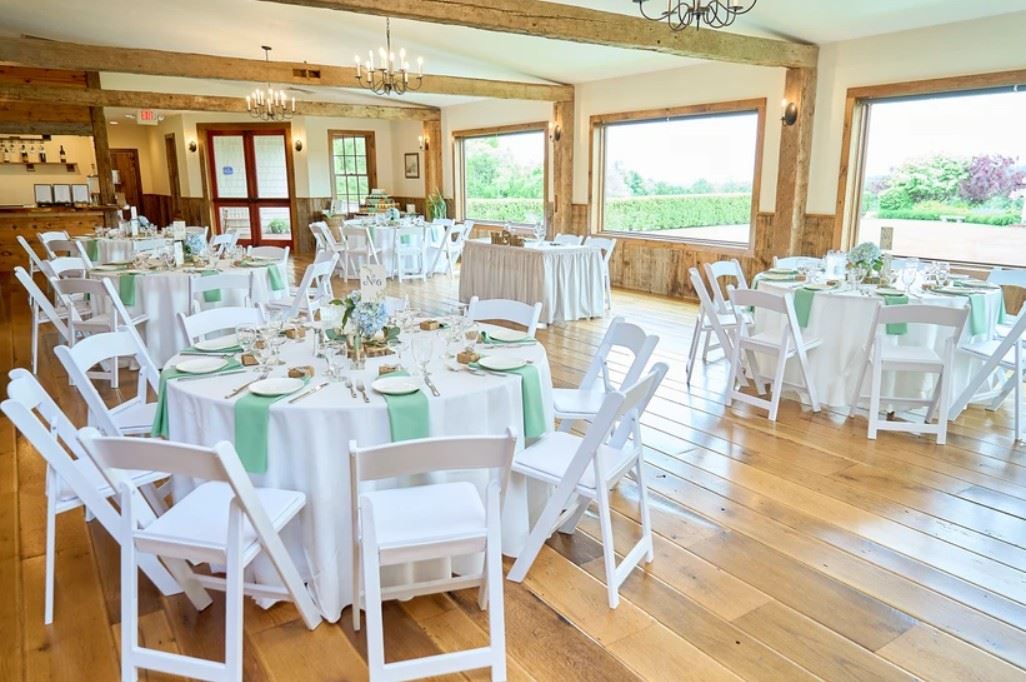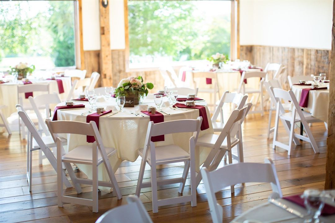 Our historic function hall has seen many uses throughout its 230 years. Recent renovations ensure our guests enjoy the most modern conveniences, such as heat and air conditioning, while also preserving the post-and-beam structure and historic nature of the building. The function hall includes a full-service bar constructed in-part with original timbers, a private bride’s room, a large dance floor, a veranda overlooking the outside reception area, a handicap-accessible entrance, large restrooms and coatroom.
