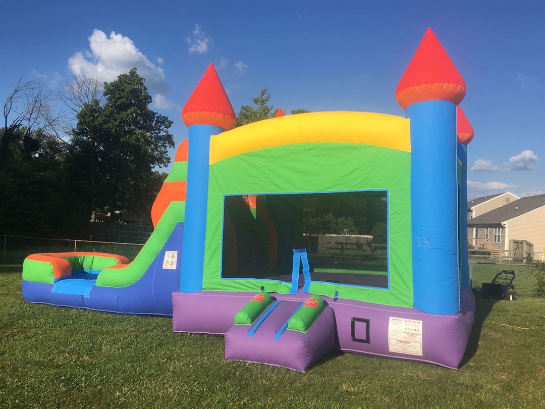 If you're looking for the best bounce house and party rentals Cincinnati has to offer, you've come to the right spot. Party Go Round is proud to provide Greater Cincinnati's best selection of bounce house rentals, water slides, obstacle courses, interactive games, tents, tables and more. Let us take the stress and worry out of your next event. With our convenient online booking system, it's a breeze to book your next birthday party, school field day or corporate function. Inflatables & party rentals is what we do, and nobody does it better than Party Go Round. When you find the perfect item, simply add it to your cart and continue shopping or proceed to checkout. Click below to reserve your date or scroll down to view our inventory. Our bounce houses are perfect for kids and adults alike. If you have limited space, this could be the perfect choice for you. Our average bounce house is right around 14' x 14' for the actual bouncing area; however, we do need to make sure we have enough clearance for the blower and the entrance. Be sure to take into consideration low hanging trees or power lines that could interfere with the inflatables. Our rainbow bounce house is a perfect, gender neutral choice that would be perfect for any boy or girl birthday party. Our bounce houses are a great choice for backyard parties, daycares, church picnics, or really just about anywhere.