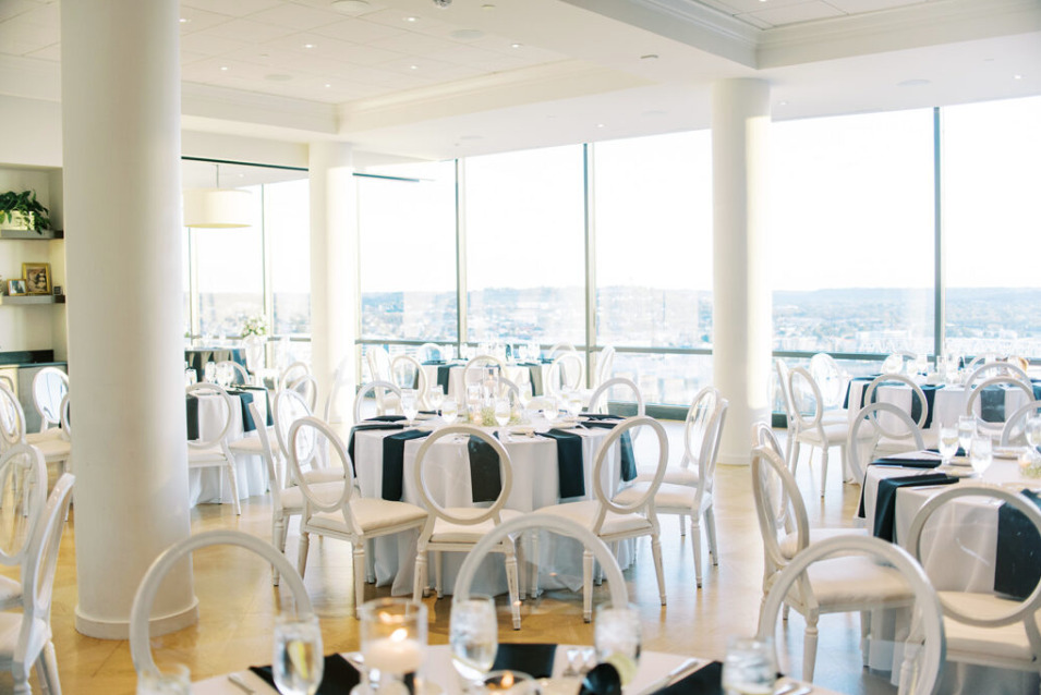 Should you choose to celebrate your day at The View at Mt. Adams, you can expect a plethora of opportunities for gorgeous wedding photos both indoors and within walking distance throughout the historic neighborhood. Licensed for all ceremony types, the venue welcomes you to celebrate a religious or non-religious event, civil union, or commitment ceremony beneath one of the largest chandeliers in the tri-state area.