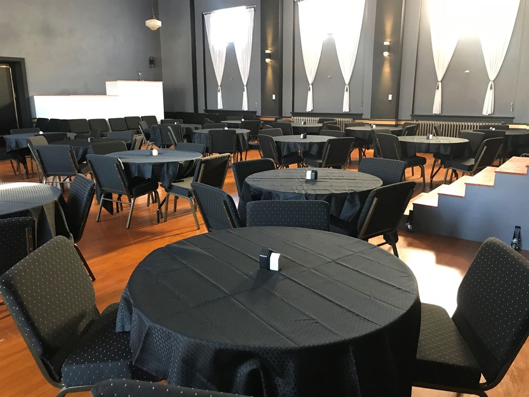 The Williams Frances Theatre is a 1928 upscale event center repurposed from a Masonic Temple. The space features all the latest high-tech amenities, from streaming video to our high-end stage built with a great sound and lighting system. The theatre is great for weddings, receptions, repast services, B2B, live entertainment, training and startup development, and pitches for investors.