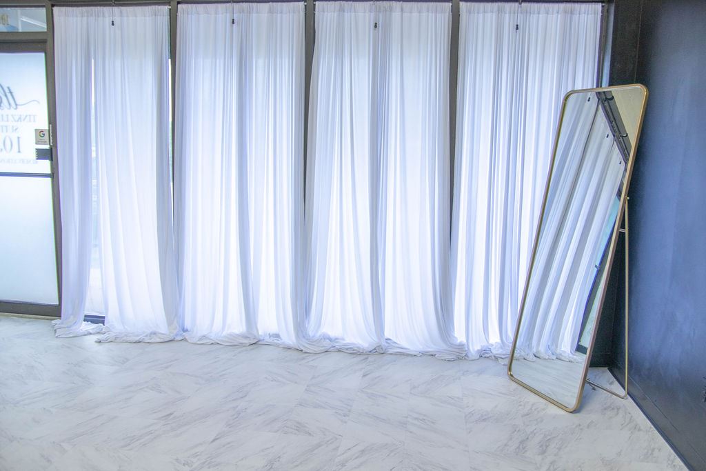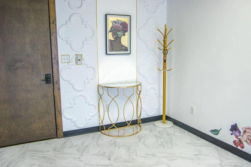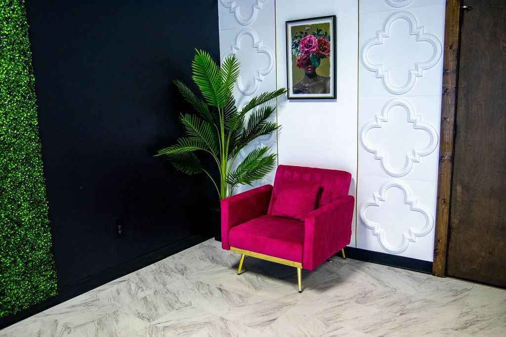 Suite 105 is a 500 sq ft creative suite available to rent for date nights, small intimate gatherings, photoshoots, networking nights and social meetups. It is located in a plaza, therefore, it is plenty of parking. Suite 105 is full of possibilities. It has a luxury touch with versatility. There are tall walls each decorated with different concepts. Draping and other add-ons can be used to switch up the look to fit your desires.