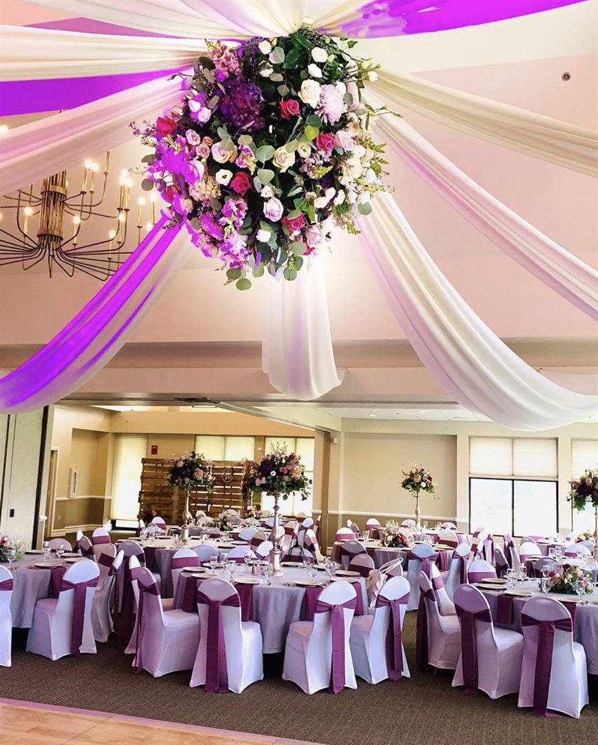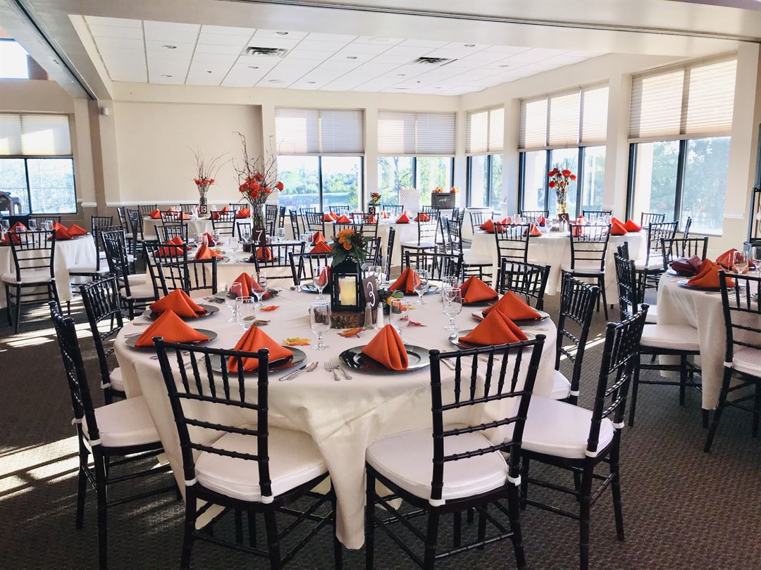 Our banquet and event facility overlooks our beautifully manicured 171-acre golf course and accommodates parties from 10 to 300 guests. Intimate gatherings are possible in one of our smaller venue rooms, while larger groups can celebrate in the elegant Ballroom. All rooms can be arranged to fit your event needs. Meadowbrook at Clayton has hosted a multitude of events including wedding ceremonies & receptions, corporate trainings & lunches, birthday & anniversary parties, baby & bridal showers, class reunions, and fundraisers The facility has two covered entrances, both handicapped accessible, perfect for both pick up and drop off in inclement weather.