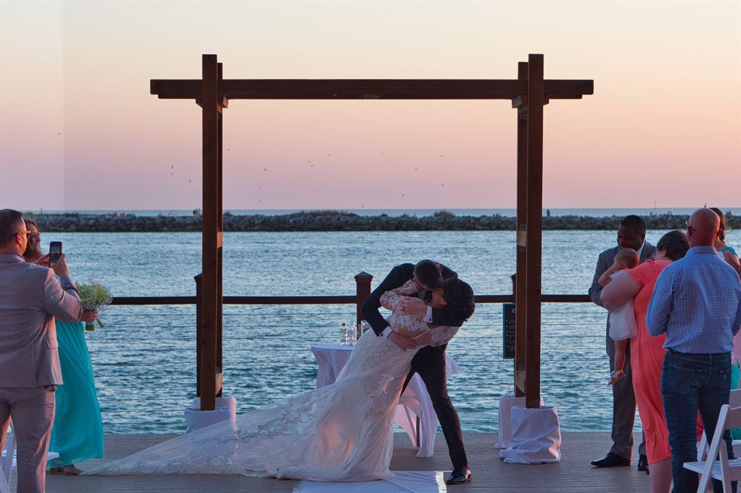 Recite your vows while feeling the warm gulf breeze on your shoulder, as a perfect sunset descends over the waters. To end the perfect evening, dance the night away with the twinkling lights of Clearwater Harbor as your backdrop.