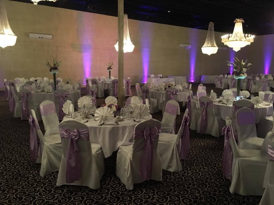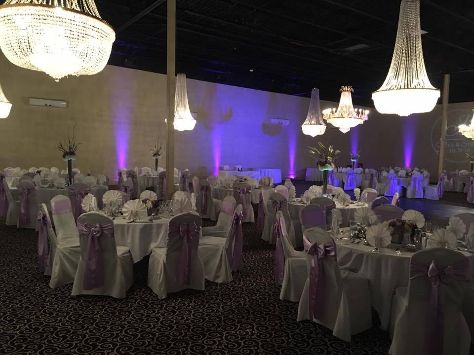 Banquet Masters facility is located on the corner of 49th Street and Ulmerton Road in the center of Pinellas County. Banquet Masters has three ballrooms with a bar available for your guests, should you desire. The Large Ballroom can host parties of 130-500 guests. The Medium Ballroom can host parties of 30-130 guests and the Small Ballroom can host parties of 24 guests. Both of the Medium and Large Ballrooms have 24 foot ceilings with crystal chandeliers suspended 7 feet off of the floor, giving the illusion of floating in midair.