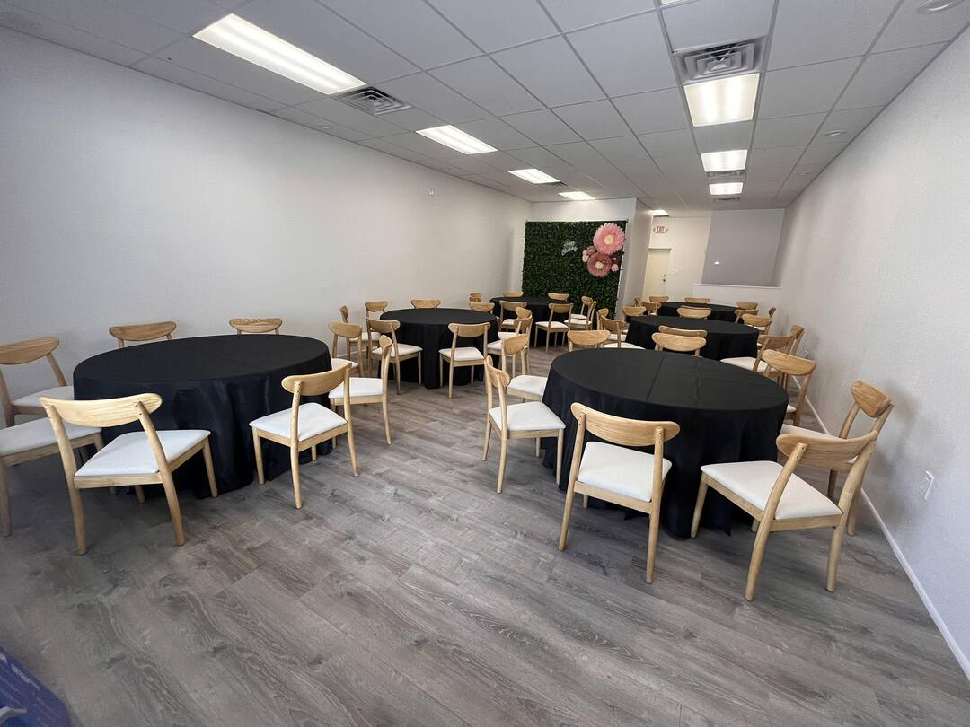 The Gathering Place is a stylish, intimate event venue conveniently located alongside US-19 in Clearwater. Our space accommodates up to 50 guests and is perfect for birthdays, baby showers, bridal showers, graduation parties, meetings, and small corporate events. Tables, chairs, and black linens are included, with plenty of on-site parking for your guests. We also offer a variety of décor and event items available for rent to help bring your vision to life in one beautiful, welcoming space.