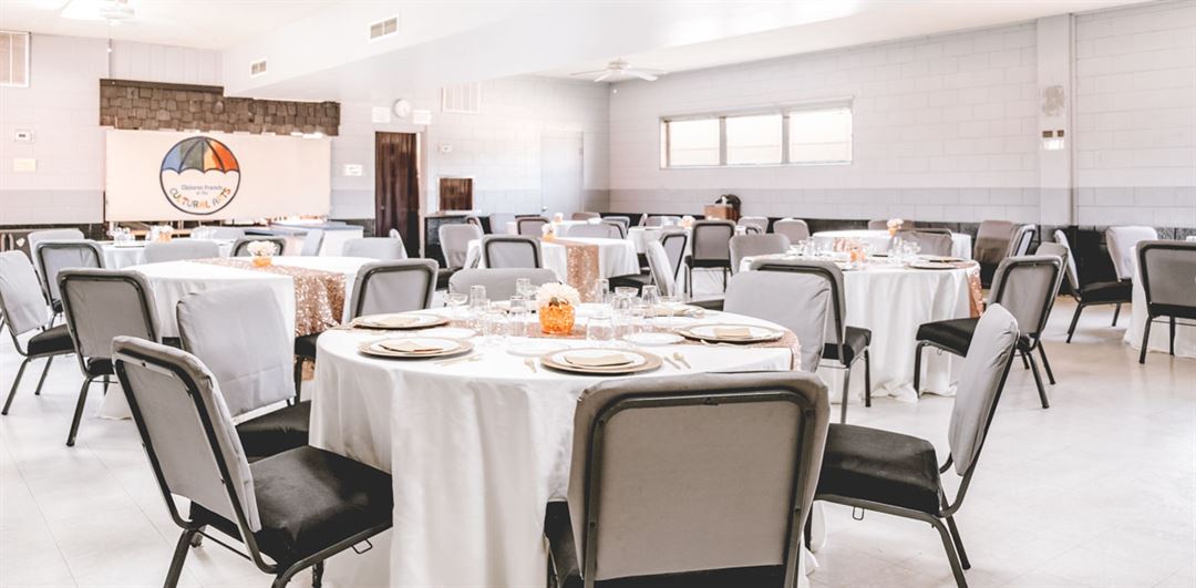 Our Gym and Cafeteria are available to host birthday parties, baby showers, banquets, formal dinners, business meetings, recitals, and more. Each of our rental spaces include their own set of tables and chairs. Our Gym can host up to 300 party guests and features a stage, private bathrooms, and high ceilings. Our Cafeteria offers a much cozier setting that can accommodate up to 135 guests and features a private bathroom. The Cafeteria also features a kitchen to warm, serve, and store your catered or prepared foods. Lastly, our smallest event space is our Classroom. It can host up to 35 guests and is perfect for business meetings, small parties such as baby showers, and intimate family dinners.