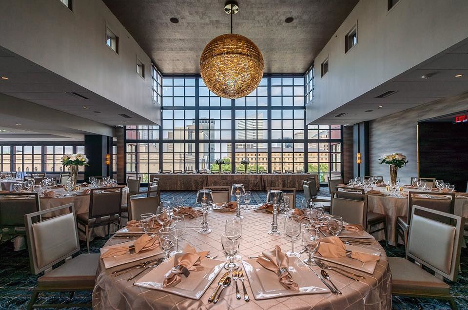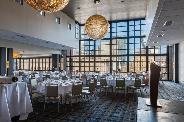 ?Located in the heart of downtown Cleveland, St. Clair Ballroom is a private banquet space for up to 300 guests with sweeping views of the Cleveland cityscape and Lake Erie. Day or night, you and your guests will enjoy this stunning backdrop.