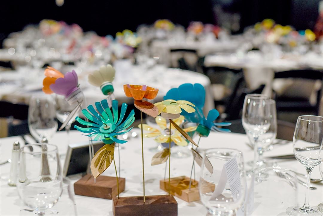 Upcycle Parts Shop is Cleveland's first creative reuse center where we make, "Less Waste and More Art!" Our signature Bottle Blossoms make the perfect sustainable flower alternative thanks to the manufacturing skills of our partners and friends at Recovery Resources who use a 19-step process to transform water bottles, vinyl flooring samples, and wire hangers into bright and bold flowers available for rental in 16 common colors. In addition to centerpieces, we also offer a full range of bouquets, boutonniers, corsages and decor related designs. As a community art organization, your rental or purchase supports our mission to support the energy of community, the excitement of creativity, and the possibility of reuse.