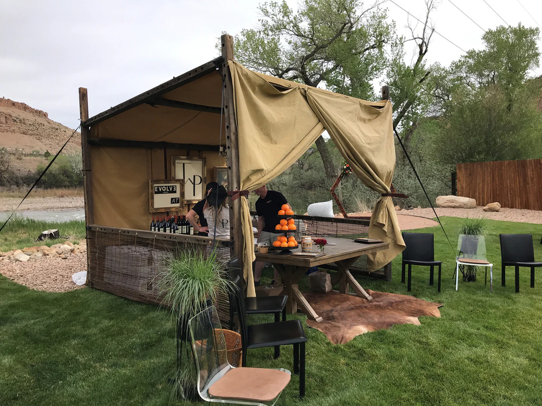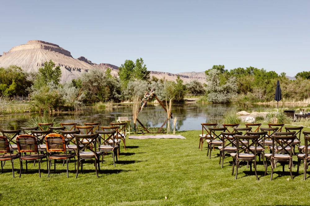 Amphitheater Over looking the Grand Mesa Seats 150, Pickleball court can accommodate a tent for 150 persons, Inn patio can accommodate 45 persons seated for a dinner or Lawns can hold up to 150 seated for dinner or ceremony