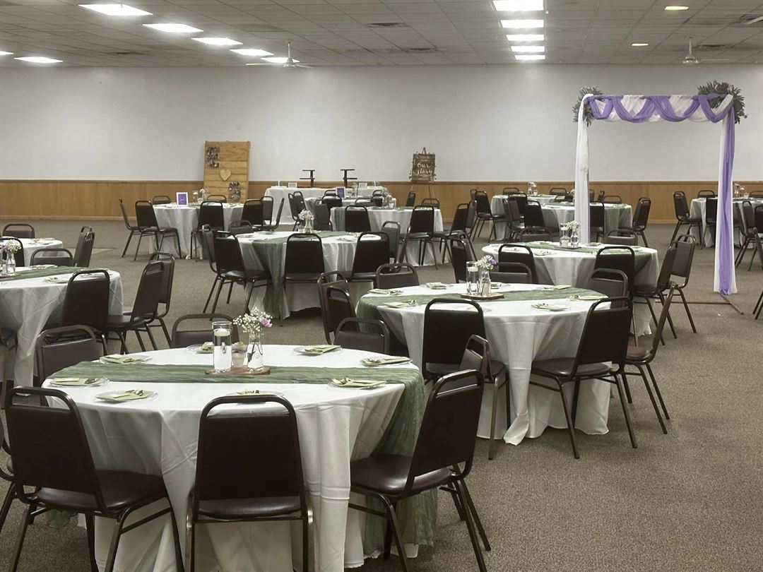 Circus Park Event Center features a 12’x20’ elevated stage, a 24’x50’ large dance floor, and 11’ ceilings, creating an inviting space where your guests can relax and celebrate any occasion (corporate events, banquets, ceremonies, graduations, birthdays, reunions, and memorials). Rental provides access to a fully equipped kitchen and refreshment areas, along with seating for up to 450 guests. The 7,500 sq ft room features 60” round tables and 8' rectangular tables that comfortably seat eight guests. The 100+ acres and pavilion with picnic tables, covered bridge, and mini creek offer a greater area to expand festivities or to host ceremonies.