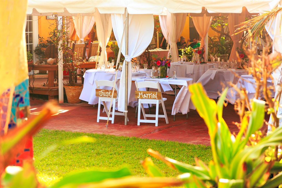 If you are looking for a unique wedding experience that will transport you and your guests to a magical place where dreams come true, then the tropical oasis of Beach Place Guesthouses is calling you! Nature offers no backdrop more romantic than the expanse of an endless ocean, the sound of the breeze in the tropical trees, warm sunlight and sand beneath your feet. Combine your vision of the perfect beach setting with lush gardens, whimsical treasures and artistic spaces, and you have a “Beach Place wedding”!