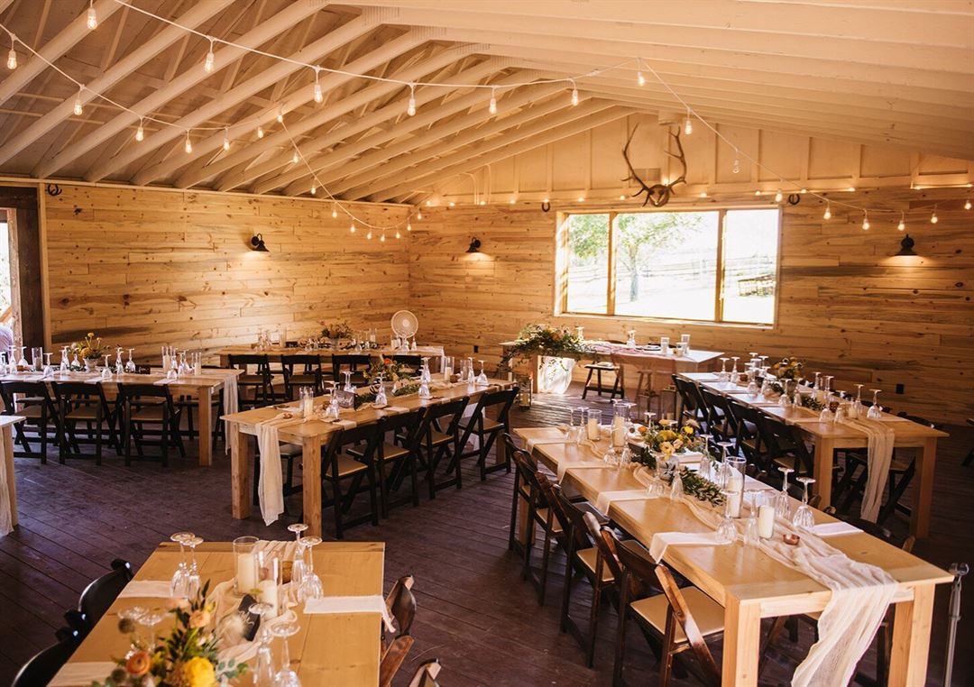Your wedding includes exclusive use of the historic 4,200 sq foot Main Lodge, rustic Western Saloon, a 2,200 sq foot indoor/outdoor Event Pavilion, hand-crafted blue pine tables and seating for 150 reception guests, ceremony seating for 150 guests, rustic log bench seating for 125 guests, indoor and outdoor ceremony areas including river-front, fire pit, and access to our full suite of Ranch activities and guest Cabins - all while surrounded by scenic, end-of-the-road wilderness.