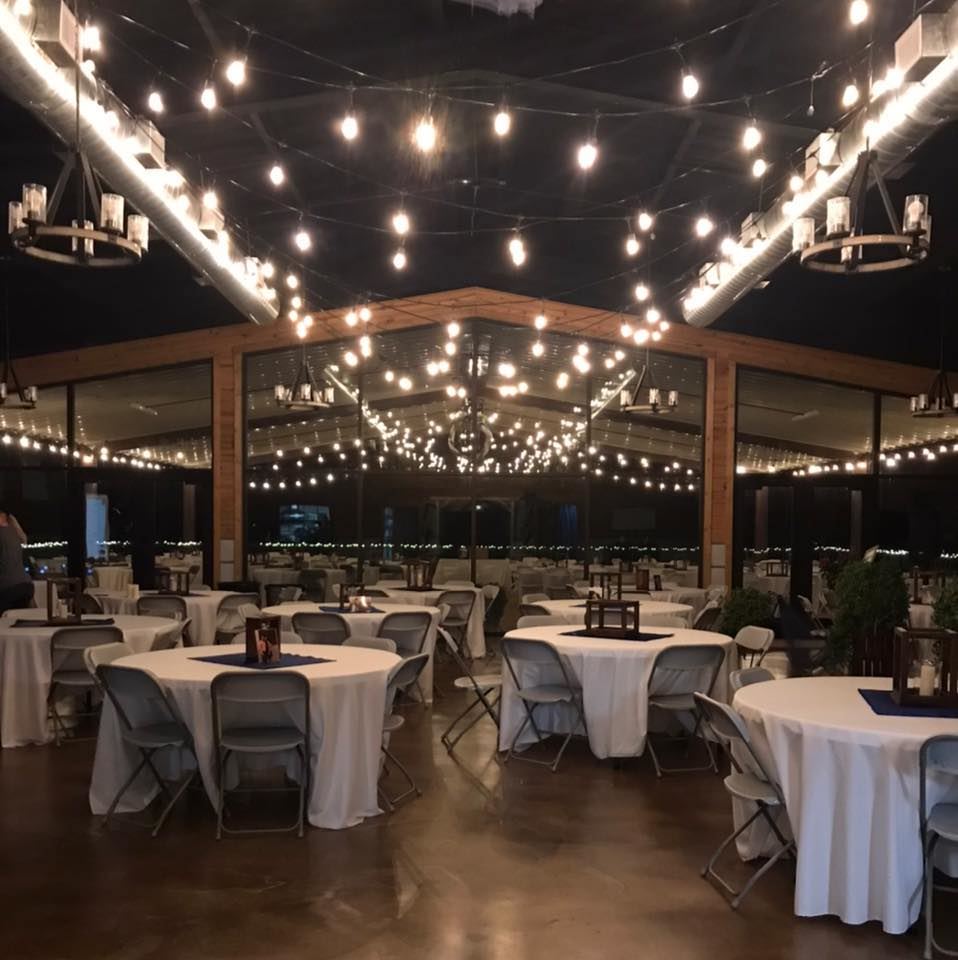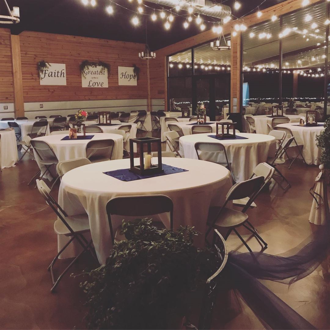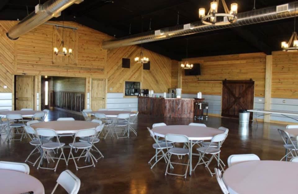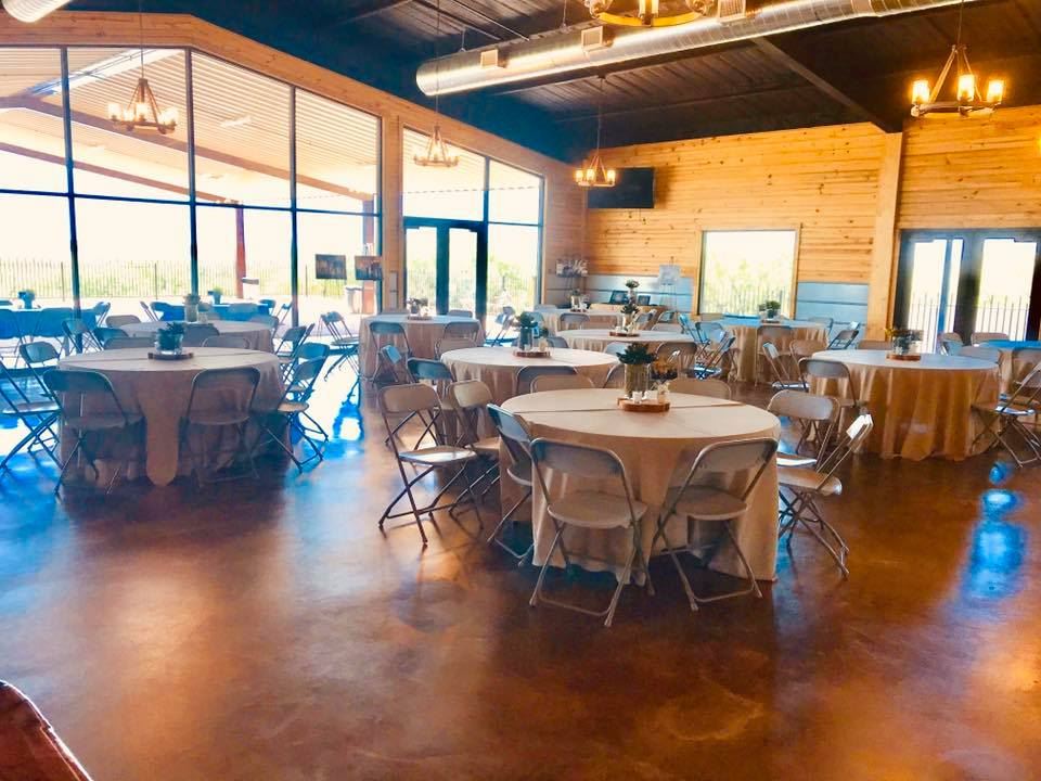 The Lodge at Rock House Ridge features a 3500 sq.ft open great room with high vaulted ceilings, rustic-modern wood/metal walls, and floor to ceiling windows that open out onto our covered deck. Our elevated, covered, 3000 sq. ft, deck overlooks a small pond, with one of the more beautiful views in Coleman, County. The lodge also features two bathrooms, large commercial kitchen-with attached outdoor covered cooking area, satellite TV, and more. The main lodge can accommodate over 200 people.