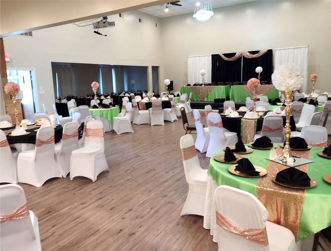 Our charming Banquet Hall is just right for your next event. We can accommodate weddings and receptions, bridal showers or baby showers, quinceaneras, sweet sixteens, high school dances, corporate events, meetings, holiday parties, and more!