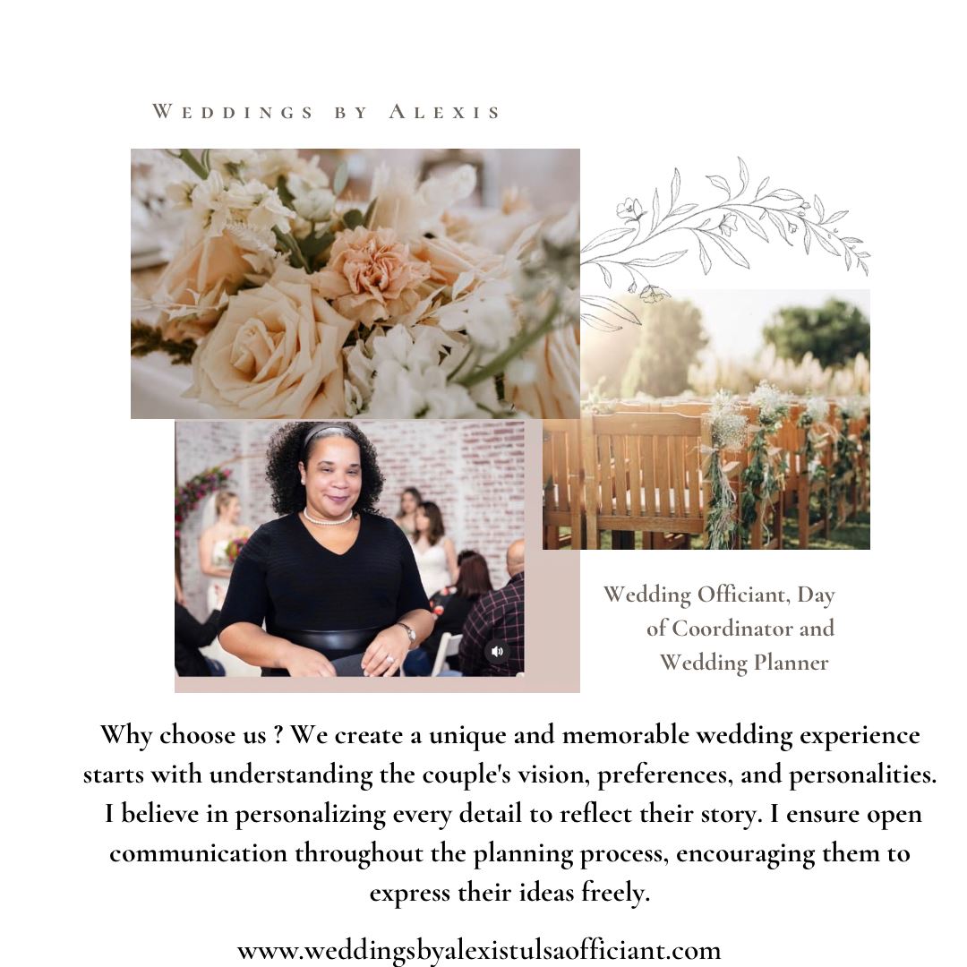 Planned by Alexis is premier event and wedding planner located in Tulsa Oklahoma . She is also an ordained minister and wedding officiant . She is dedicated to helping couples on a budget and who don’t have much time , successfully plan the wedding of their dreams.