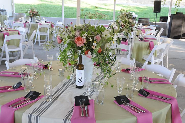 Every season at the winery offers a different look and feel. Grapes on and off the vine, lush green leaves turn to golden fall colors. Our beautiful Winery Estate venue can host outdoor weddings & events of up to 200 guests. We have three ceremony sites surrounded by vineyards, rolling hills, and a covered pavilion for your reception/event.