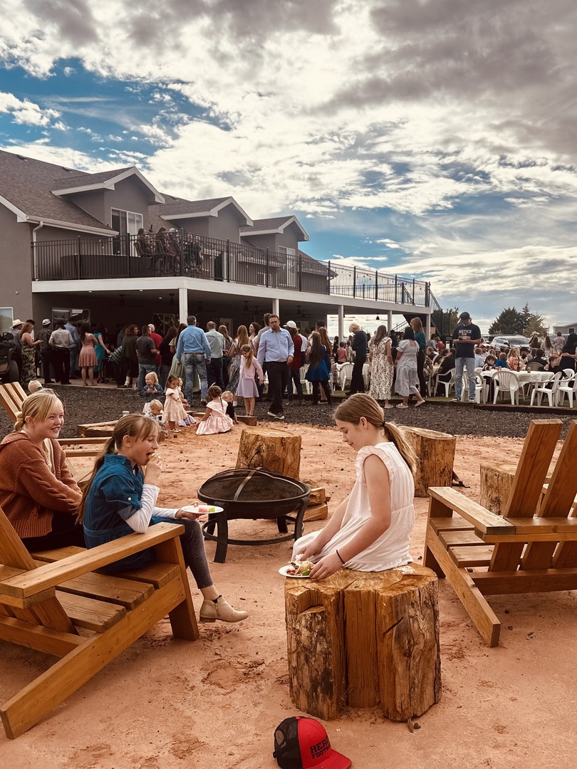 This is a luxurious 6 bed 5 bath facility with a 60 ft x20 ft deck. It has an outdoor covered deck same size as above. With barbecue and jacuzzis and a large fake grass area that is optimal for reunions and weddings. It is nestled up against Zions mountains. Large area for parking and luxurious stay for after wedding family or honeymooners. The upper unit has a very large serving kitchen area with double islands and double ovens. Optimal for serving. Note wedding must be outside. This is not an indoor wedding venue.
