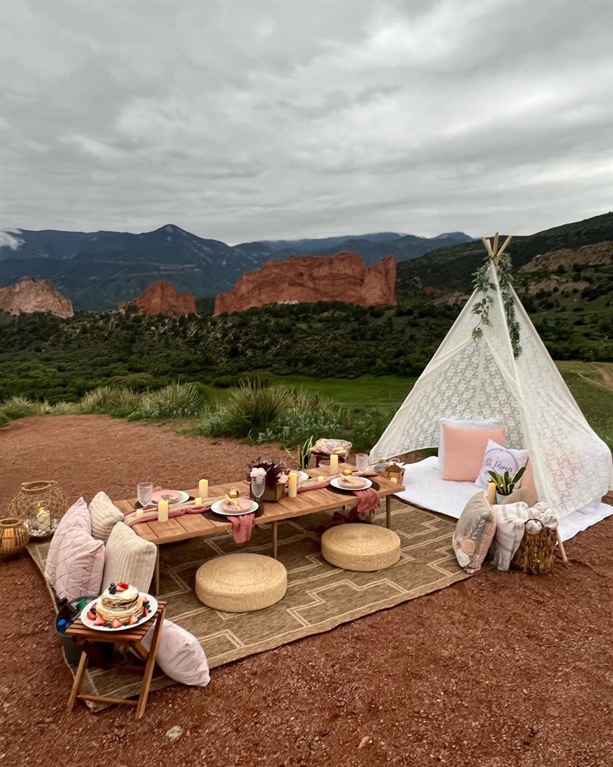 Elite Picnics is a luxury picnic business. We believe that all occasions, whether big or small deserve to be elegant and stunning. That's why we have taken the humble ordinary picnic and elevated it to a picture-perfect experience. Enjoy a luxury picnic set u in the beautiful Colorado Springs area. We do anniversaries, baby showers, brunch, bridal showers, bachelorett parties, corporate picnics, dinner parties, date nights and group dates, proposals, engagements, Mother's Day Picnics.